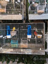 Salve vendo il mio Allevamento in ottime salute, vendo perché devo lasciare urgentemente il box nn so dove metterli. (1)Allora coppia di cardelino nato in gabbia già provato del anno scorso sempre con canarina, che l anno scorso a fatto 4 bastardi,)(2) Dopo cardelino della venezuelano con canarina spagnola, lui un ottimo riproduttore con canarine spagnoli, con lei l anno scorso ne a fatto 3 uova). (3)Dopo canarini bianchi 2025 già sto facendo il nido) . (4) dopo coppia di canarina masaico già in covo con 3 uova 2025) (5) coppia di canarini sempre masaica 2024) e dopo cedo tutti i accessori che ho per l oro prezzo poco trattabile