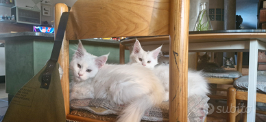 Allevamento regolarmente registrato AGI WCF riconosciuto MASAF dispone di ultimi due cuccioli Maine Coon. I gattini vengono ceduti completi di tutta la documentazione sanitaria: libretto sanitario, ciclo completo compreso di 3 vaccinazioni pentavalenti con copertura FelV , ciclo di tre sverminazioni, visite veterinarie certificate pre cessione, esame ecocardiologico dei cuccioli. Documentazione burocratica : Pedigree AGI, microchip con passaggio di proprietà ATS al nuovo proprietario incluso per tracciamento. Documentazione sanitaria dei genitori: test genetici, test FiV FelV negativi, copia screening ecocardiologico dei genitori. Contratto di cessione. Possibilità di richiedere ulteriori test a seconda delle esigenze familiari. Disponili un maschietto bianco e una femminuccia black tortie nati il 14/12/25 Per ulteriori informazioni senza impegno contattare il numero allevamento 3711576179.