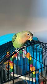 Ultimo pullo di 2 mesi e mezzo opalino verde testa rossa allevato a mano con anello identificativo