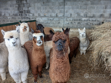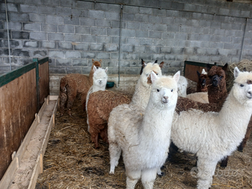 Disponibili alpaca selezionati di varie età cria, femmine gravide, femmine con cria, maschi ottima qualità di fibra, adatti per pet-therapy, fattorie didattiche, parchi privati.