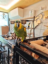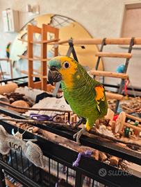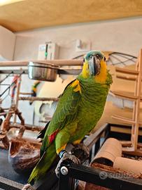 amazone fronte blu maschio con molto giallo, stupenda, buonissima, super intelligente di mesi 6, uno dei pappagalli più parlanti allevata a mano con amore va d'accordo con tutti possibilità anche di enorme gabbia adatta anellata e Cites Italia tutto in regola completa di test malattie infettive e sessaggio certificato