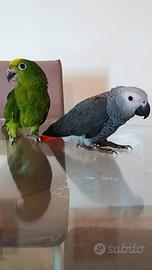 Cedibili splendidi esemplari di: Amazzone fronte gialla Cenerino coda rossa Entrambi regolarmente documentati e in perfetta regola con le normative vigenti. Animali allevati con passione, in ottime condizioni di salute, ben gestiti e seguiti con attenzione. Disponibili anche separatamente. Possibilità di consegna in tutta italia con mezzo autorizzato. Solo contatti seri, no perditempo. Non si tratta di regalo.