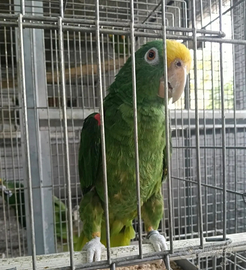 Disponibile,maschio di circa 10 anni,pappagallo Amazzone di Panama(Amazona ochrocephala panamensis) adulto e già riprodotto . Si cede per fuga della femmina! Eventualmente valuto acquisto di una femmina adulta.