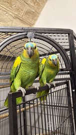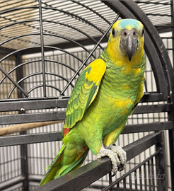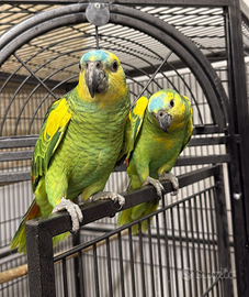Bellissimi pulli di Amazzone estiva xanthopteryx allevati a mano in fase di fine svezzamento con regolare documentazione Cites Anello FOI ( animali italiani ) sessaggio e analisi delle malattie
