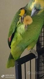 Cedo amazzone fronte azzurra di circa 3 anni femmina con foglio di assaggio e di cessione pronta per la riproduzione non allevata a mano ma molto docile come si vede in foto il prezzo e di 500 non trattabili contattatemi solo se interessati