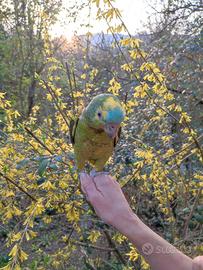 Amazzone fronte blu maschio allevato a mano dolcissimo ha sette mesi.Posaibilità di spedizione in tutta Italia con corriere autorizzato