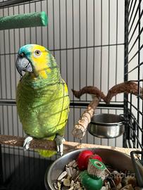 Cedo a malincuore Amazzone fronte blu di 5 anni, allevato a mano e abituato a vivere in casa.