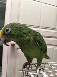 Cedo per mancanza di tempo bellissimo esemplare di Amazzone Fronte Gialla allevato a mano maschio di tre anni. Dice qualche parola ed è un po' timoroso con gli estranei. Ha il microchip e si cede con regolare documentazione.