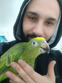 Supporto post-vendita per consigli su alimentazione, addestramento e benessere del pappagallo.