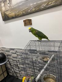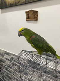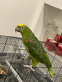 Cedesi spettacolare esemplare di Amazzone fronte gialla (Amazona ochrocephala). Il pappagallo è in salute perfetta, piumaggio brillante e caratterizzato da una simpatia travolgente. È un ottimo parlatore e molto socievole. Nel suo repertorio dice chiaramente: "Ciao bello" e "Buongiorno" "O sce'" e "Guaglió" (parla napoletano!) Esegue vari fischi richiami. L'esemplare è completamente in regola: Provvisto di Certificato CITES originale. Anello inamovibile alla zampa. Cerco per lui una famiglia che gli dedichi tempo e attenzioni. È un animale molto intelligente che ama interagire e stare al centro dell'attenzione.