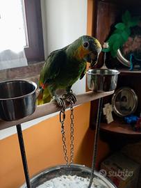 Vendo pappagallo amazzone fronteblu, maschio di due anni con regolare documento cites, comincia a proferire brevi parole, compreso di trespolo catenella e anellino piede.