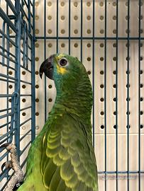 2 bellissimi esemplari di amazzone fronte blu allevati a mano, dolcissimi e buonissimi, giovani circa 7 mesi pagabili anche a rate, chiedete informazioni. prezzo cadauno