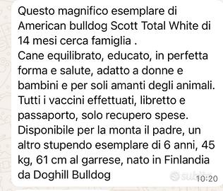 Questo magnifico esemplare di American bulldog Scott Total White di 14 mesi cerca famiglia .