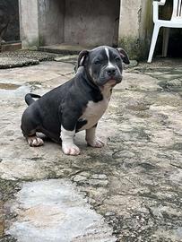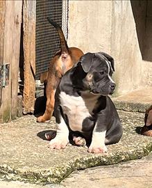 Vendo cucciolo di american bully tricolor blu , nato il 5/01 , il cucciolo ha doppio ciclo di sverminazione e due vaccini fatti , viene ceduto con libretto sanitario e cedolino abkc, per info 3517127860