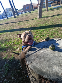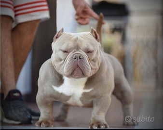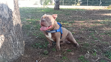 lui è Ares american bully lilac di 14 mesi disponibile per monta. con pedigree le ultime due foto papà Devil e nonno shogun e lui non è da meno.