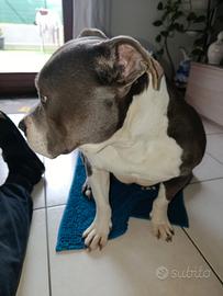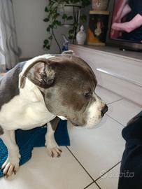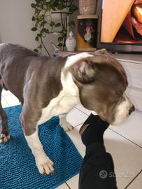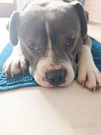 American bully con pedigree di anni 5 molto buono e coccolone , vaccinato con microchip colore grigio scuro, pelo corto non ama i gatti ,solo veramente interessati e amante degli animali.