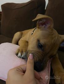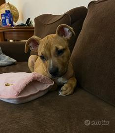 Disponibile splendida cucciola femmina di American Pit Bull Terrier di 3 mesi. È sana, vivace e molto affettuosa, cresciuta in ambiente familiare e abituata al contatto con le persone. Ha un carattere dolce, giocherellone e molto intelligente. Ama stare in compagnia ed è ideale per chi cerca un cane fedele e affettuoso.