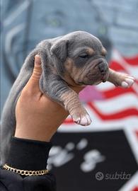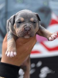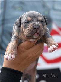 American Pitbull Terrier cucciola Tricolor Blue con pedigree ACCP Cucciola di American Pitbull Terrier, mantello Tricolor Blue, nata l'08/03/2026. La cucciola cresce in contesto familiare, con attenzione alla socializzazione e al benessere. Si presenta equilibrata e abituata al contatto umano Cessione al conseguimento dei 60 giorni, come previsto dalla legge, con: - Libretto sanitario - Primo vaccino - Ciclo di sverminazione completo - Microchip - Certificato di buona salute - Pedigree ACCP con deposito DNA dei genitori - Kit puppy Disponibile per visione Per informazioni, contatto tramite messaggio privato. Consegnamo in tutta Italia con mezzo autorizzato