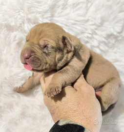 Come da titolo abbiamo una cucciolata di American Pitbull Terrier di selezione merle, si cede dopo i 65 gg, con trasporto qualora ci sia, 3 sverminazioni, vaccino, microchip, voltura del microchip pedigree, il pagamento viene effettuato con un acconto per la prenotazione e tutta la restante parte alla consegna, per qualsiasi info nn esitate a scrivermi su WhatsApp 3492359734