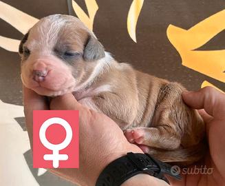 Golden Blood Kennel rende disponibili alla prenotazione splendidi cuccioli di American Pitbull Terrier in Standard UKC. I cuccioli sono nati il 01/04/2026 e raggiungeranno le loro nuove famiglie ai 60 gg compiuti con: -1 vaccino - 3 cicli vermifughi - Pedigree MCKCI - Iscriziome anagrafe canina e microcip - Certificato veterinario di buona salute P.s NOOOO AFFARISTI O PERDITEMPO....GRAZIE