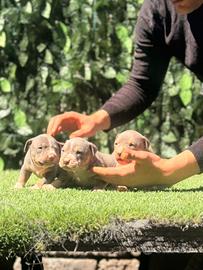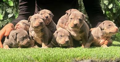 Disponibile American Pitbull terrier tricolore in standard ukc Disponibile Maschi e femmine Hanno 25 giorni Verranno consegnati con -vaccino -libretto sanitario -certificato di buona salute - pedigree a richiesta Per qualsisi informazioni contattami su +393924745052