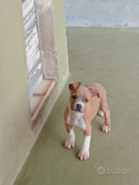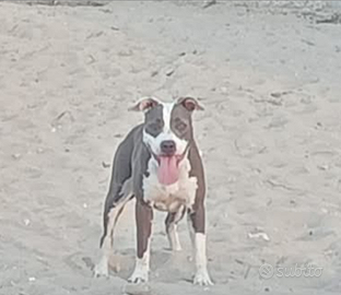 Ultima cucciola Amstaff disponibile colore Blue fawn nata il 12/09/25. Genitori visibili in foto esenti dalle malattie genetiche della razza ataxia clear by parentage ottime linee di sangue.