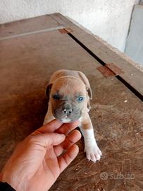 Femminuccia di Amstaff disponibile nata il 23/02/26 colore Blue fawn. Verrà ceduta al compimento dei 60 GG con libretto sanitario microchip pedigree ENCI ciclo vermifugo completo primo vaccino. Genitori esenti da malattie genetiche della razza ataxia clear by parentage. Astenersi perditempo e collezionisti di foto.
