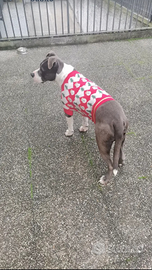 Cedesi a prezzo simbolico Amstaff docile e mansueto, molto intelligente per impossibilità a tenerlo nella nuova abitazione dove sino. Verrà consegnato con microchip e libretto di vaccinazione.