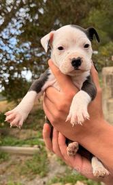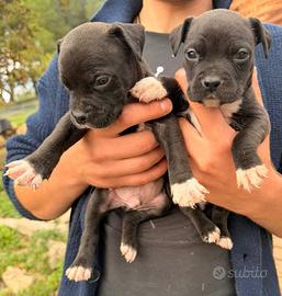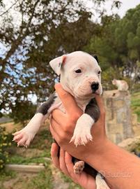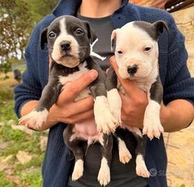 Vendo cuccioli di American staffordshire. I cuccioli vengono da padre blue nose e madre tricolor entrambi con pedigree, hanno genetiche come de paco,cuda; chi capisce della razza sa di cosa sto parlando. I cuccioli hanno 28 giorni e verranno ceduti a 60 con libretto sanitario, primo vaccino, vermifugo e starter di crocchette.
