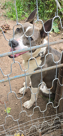 Cucciola di amstaff di 15 mesi,figlia di cani importanti,colore bellissimo,mai accoppiata,il secondo calore a breve,brava con bimbi,persone e altri simili,ubidiente