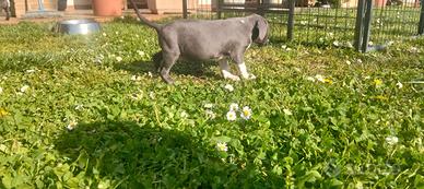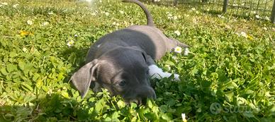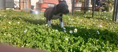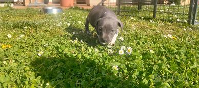 Vendo ultima cucciola di Amstaff blu nata il 13/02. Ai piccoli viene effettuato trattamento Biosensor, vivono in casa a contatto con bambini e altri animali. I cuccioli verranno ceduti al compimento dei 63 giorni con pedigree, ciclo di sverminazione, primo vaccino, microchip, consigli sull'alimentazione e assistenza post-vendita. Disponibile solo 1 femmina. Ottimo pedigree. No perditempo.
