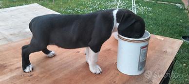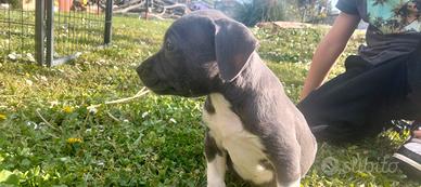 Vendo cuccioli di Amstaff blu nati il 13/02. Ai piccoli viene effettuato trattamento Biosensor, vivono in casa a contatto con bambini e altri animali. I cuccioli verranno ceduti al compimento dei 63 giorni con pedigree, ciclo di sverminazione, primo vaccino, microchip, consigli sull'alimentazione e assistenza post-vendita. Disponibili 1 maschio e 2 femmine. Ottimo pedigree. No perditempo.