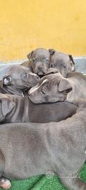 Sei cucioli di amstaff blue 2 maschi e 4 femmine di 60 giorni svezzati sverminati e prima vaccinazione. La mamma è una amstaff blue completo e il padre è un amstaff blue con il petto bianco entrambi visibili acasa mia. Possibilità di consegna. Solo contatto telefonico 3802699891
