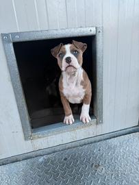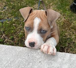 Vendo bellissimo cucciolo di amstaff di 2 mesi selezionato x carattere e morfologia della razza, con sverminazione già effettuata e pronto per andare a vivere con la sua famiglia per sempre. Genitori entrambi in mio possesso, con linee di sangue importanti con pedigree. Su richiesta invio foto dei genitori. No perditempo.