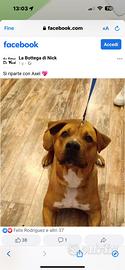 A causa della perdita di lavoro e problemi ulteriori, non posso più occuparmi del mio cane Amstaff no pedigree, maschio 4 anni di nome Axel. Microchippato, ha sempre vissuto all'aperto. Molto socievole, vede la figura maschile come dominante. Non ama i gatti. Atletico pesa circa 34kg. Cedo davvero a malincuore ma non ho altre soluzioni. Zona Cuneo (CN).