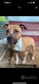 Amstaff femmina di 5 anni in regalo. È stata abbandonata presso pensione privata. Bravissima, compatibile con altri cani. Info in privato