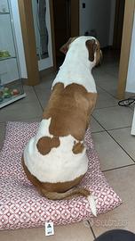 Ciao, mi chiamo Thor sono un Amstaff maschio con Pedigree, ho 5 anni e cerco una compagna per fare dei bei cuccioli.