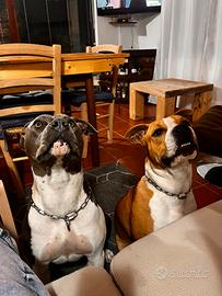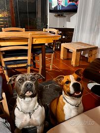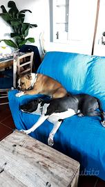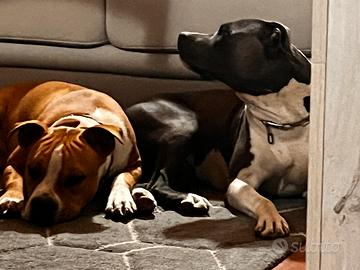 Coppia Amstaff entrambi con pedegree ! Entrambi tre anni non sterilizzati , femmina blu linea di sangue ruffian maschio marrone Linea sabbia wild Blood, entrambi provengo da allevamento . Cedo a conoscitori , amanti e consapevoli della razza ! Sono entrambi veccianati e in ottima salute ! Abituati alla casa e al giardino . Socievoli e coccoloni per niente aggressivi con le persone ! No gatti , altri cani a simpatia come per le persone ! Altri info in privato ! Il massimo sarebbe non separarli essendo cresciuti insieme , non sono fratelli ne provengono dallo stesso allevamento