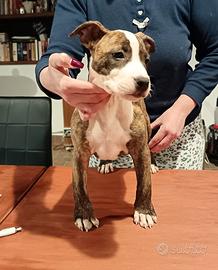 Ultima cucciola di amstaff di 3 mesi... Completa di 3 sverminazioni, 2 vaccini, microchip e, libretto sanitario e pedigree enci...