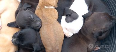 Cedesi cuccioli di American Staffordshire Terrier. Cuccioli esenti da displasia, miocardite e atassia free. Cuccioli di alta genealogia. Disponibili sia maschi che femmine nati il 29 settembre . Visibili previo appuntamento . Genitori in mio possesso