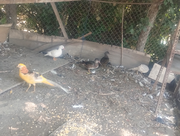 vendo per mancanza di tempo copia di fagiani dorato a 100 E del anno scorso e copia di anatra mandarino a 60 ? di due anni anche 2 galine e 1 gallo razza mugineze taglia piccola tutte 35 una coppia di moroseta giallo a 40? la coppia per informazioni chiamare al 3888022317
