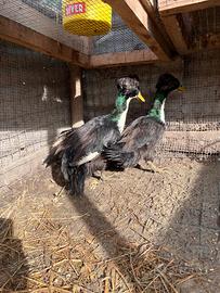 Disponibile maschio di anatra ciuffata in colorazione nera con bavetta, età 6 mesi.