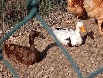Cedo coppia di anatre corridrici, femmina nera e maschio pezzato bianco.