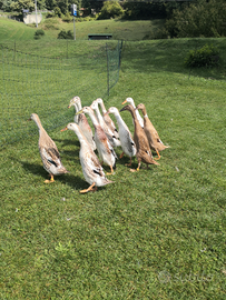 Anatre corritrici di 5 mesi in gruppi da 4 esemplari (1 maschio+3 femmine). Colorazione APPLEYARD. € 90/gruppo.