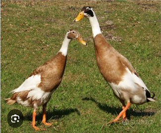 5 maschi anatre corritrici indiane, colore camoscio pezzate buoni riproduttori giovani, nati da cova naturale in blocco 100€