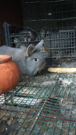 Disponibili 3 coniglietti nani svezzati da 15 giorni a 10 euro l uno, due a pelo lungo tipo testa di leone e uno a pelo corto tutti e tre colorazione blu di vienna, presi tutti e 3 li do a 25 euro, sono 3 femminucce.