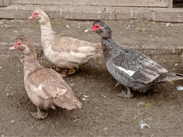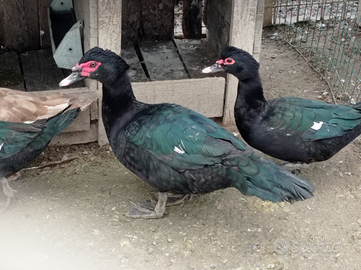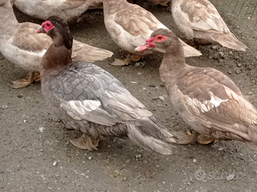 Disponibili tris di anatre mute, varie colorazioni (rippled, rippled cioccolato, nere, blu, cioccolato, lilla, barrato nero e barrato blu) soggetti selezionati e pronti per la riproduzione