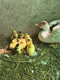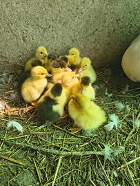 Anatroccoli di 15 giorni di anatra muta bianche e bianchi e neri