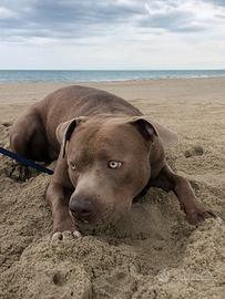 Il mio amstaff di un anno e mezzo cerca casa, purtroppo per motivi di salute non posso seguirlo come merita, è un cucciolo giocarellone, con gli altri cani vuole giocare non è aggressivo... molto affettuoso, adora qualsiasi persona che gli dia attenzioni