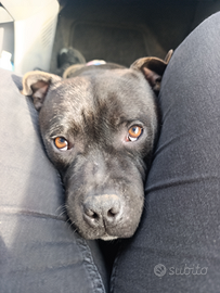 Regalo Staffordshire bull terrier di un anno e mezzo nero,con cip, pedigree, vaccinazioni.